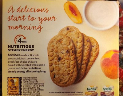 Start your morning off right with lightly sweet and crunchy belVita Cranberry Orange Breakfast Biscuits. These breakfast biscuits combine wholesome grains with cranberry orange flavor for a delicious breakfast. Specially baked, these biscuits contain slow-release carbs that break down gradually in the body to deliver delicious, steady energy all morning long so you can enjoy these with your morning coffee, yogurt and fruit or as an instant breakfast food no matter what the morning brings. Each 50 gram serving of these breakfast cookies contains 18 grams of whole grain, 2 grams of fiber and B vitamins for a delicious alternative to breakfast bars. A simple addition to your morning, these cholesterol-free cranberry orange cookies contain no high-fructose corn syrup and no artificial colors, flavors or sweeteners. What are you waiting for? These convenient breakfast biscuits made with wholesome grains are a great alternative to traditional breakfast snacks. These breakfast biscuits are also energizing alternatives to snack bars and wholesome additions to college care packages. Each individual pack contains four belVita Cranberry Orange Breakfast Biscuits for you to enjoy on the go, at the office or at home for lasting morning energy.