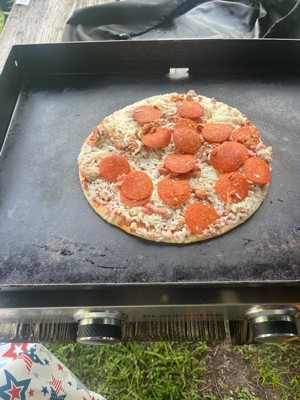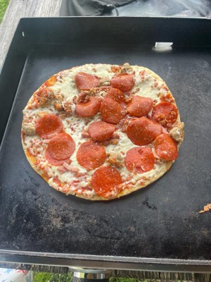 [This review was collected as part of a promotion.] I cooked this on our Blackstone griddle while camping. It made the crust crispy and delicious. The meat was excellent and the pizza has great flavor. Will eat again!