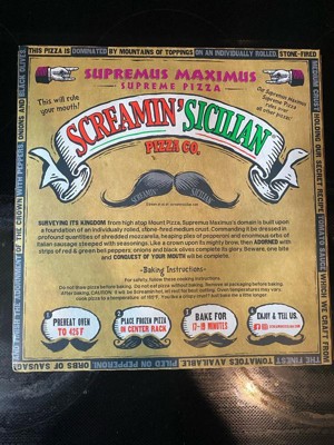 Wow! The Screamin' Sicilian Maximus Supreme is the best frozen pizza I've ever had. Usually buy Jacks, Red Barron or Tombstone frozen pizzas to have on hand when ki don't feel like cooking. Saw this one and it looked good at a reasonable price so I thought I would try it. Glad I be did. This is my new go to frozen pizza I'll stock up my freezer with.