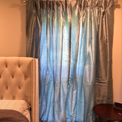 I purchased a good amount of these curtain panels. I hunted everywhere online and Target had the best price! They are light filtering but are lined with white fabric. The faux silk has a nice sheen, but feel a little thin. They do look nice hung up and steamed out though! I love the pinch pleat tops. The Teal color is more of a subdued slate blue than a true teal. I really wish they came in Navy!