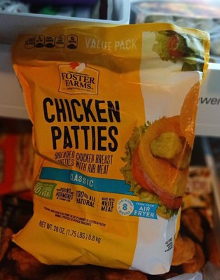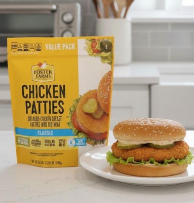 Foster Farms has always been the brand you trust for the finest quality poultry products. Our 100% "all natural" cooked chicken products are made with chicken that has been raised with no antibiotics ever. This classic family favorite is perfect to keep on hand for quick meals that everyone will enjoy. Just heat and serve our Foster Farms Classic Chicken Patties, 28 Oz (Frozen) with a side of veggies or fruit, and dinner is served.
