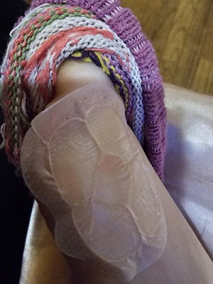 I honestly think these are really terrible and a scam. I've tried EVERY possible way to be able to keep these on my bunion while I put my sock on , they roll up immediately, do not stick or stay and the $5 i spent is down the drain. Unusable and I wouldn't waste your money.