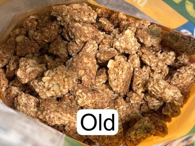 Disappointed with the change of recipe in these latest batches. The original granola was toasted darker with a nice crunch and this new version is a lighter shade with a more squishy texture and sweet chemical aftertaste.