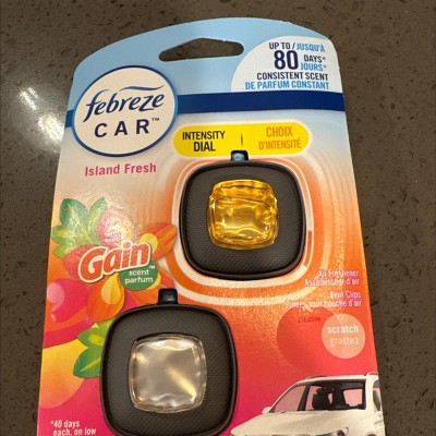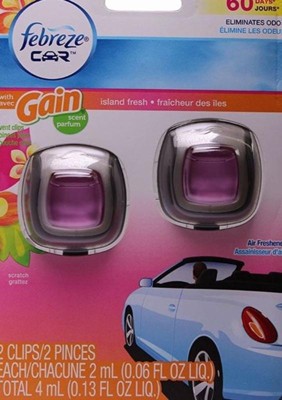 Febreze Car Air Freshener Vent Clip - Gain Island Fresh - 0.13 fl oz/2pk: Dye-Free, Phthalate-Free, Disposable, Oil