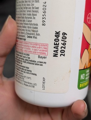 Exp date stamped on the bottle is 2026/10 from Lot 89320348. 160 chewable tablets. I have several tablets left, but they appear mildewy, mottled & discolored. Which looks pretty gross. I can't give these to my grandchildren and feel confident. Disappointed.