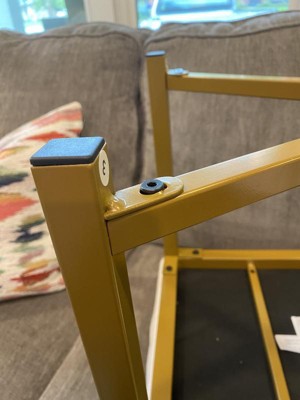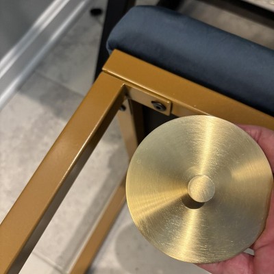 For the price, it’s a nice piece. Very sturdy and the fabric is nice! Highly recommend applying screws loosely until you have all pieces attached. This allows you to keep corners straight. The blue velvet is very soft and much nicer than expected. The gold is not gold as you can see from my comparison pic. It’s more of a yellowed brown. I may spray paint those parts a prettier gold but for now I’m pleased with the bench.