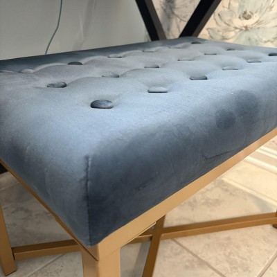 Really nice bench/footstool. The velvet fabric is pure luxury so I put a towel on top when I'm using it every day. It is the perfect height and very comfortable. I have other things in my living area that have gold touches, and this adds to and matches perfectly. You can't go wrong for this, especially at this price.