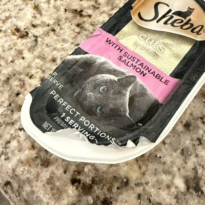 My cat typically is a hard food all the way but one day my partner said grab her a soft food as a little treat, we had recently changed her hard food to soft centers (which she loves). I found out ah favored fish sometimes wouldn’t touch non fish, so Damone white fish a tuna was the choices, so I tried other brands veggie mixtures, some of he ways it’s cut wasn’t favorable for her to finish the one a day. Tuna seemed or make her sick 🤢 so tuna an white fish I got Sheba brand she seemed to enjoy well i saw the Salmon in Creamy Sauce and she now won’t eat any other soft (not even regular salmon) she still eats her hard food when she realizes she isn’t getting another serving until dinner or breakfast she gets two resins a at and begs and meows an goes nuts I had to double check it didn’t contain catnip. My snack turned into a Sheba salmon cream sauce addiction. My partner wants me to stop the soft food (there is noway, this product is just to much her favorite🤩, for having a picky cat you can’t take away a GEM) only issue is two stores sell it near me and one doesn’t hold stock often.