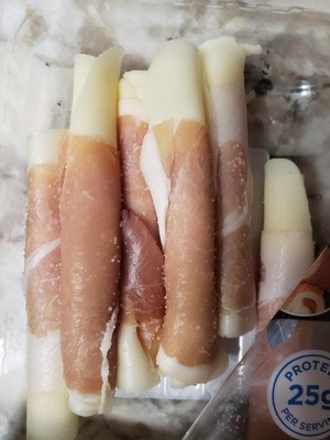 I tried this first in Hawaii as a late night snack from the ABC store. Yummy yummy ! I'm picky with prosciutto because i don't like it slices thick. These are perfect with the mozzarella so it takes away some of the saltiness. I had to search properly to find this one because the others i tried are nothing like it. They are on the expensive side so won't be eating as often as I would if the cost was down but you get what you pay for . A quality product with fresh meat and cheese.