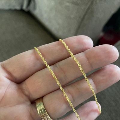 I was looking for a gold chain for my 19 yr old daughter. Every one I looked at was over $90 and looked very thin. I seen this chain online & when it came in I was pleasantly surprised:) it’s beautiful and the clasp is really nice. It looks so much more expensive than I was! Trust me when I say I wouldn’t hesitate on purchasing this chain. Only dislike was it didn’t come in a box, but that’s no big deal.
