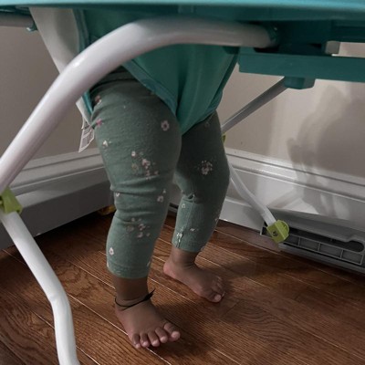 I feel like the height should be increased .. I kept the height in the last place,still my 8 month old can completely put her legs on the floor.. she is 28 inches tall now.. May be not for the tall babies.