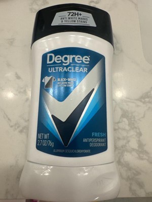 The Degree UltraClear Black+White Fresh Antiperspirant is absolutely fantastic—I feel confidently fresh from morning through night! It glides on smoothly without leaving any white marks on dark clothes or yellow stains on light fabrics. The scent is clean and crisp, never overpowering, and the 48-hour protection really holds up, even through workouts and long days. It’s the perfect balance of performance and care, making it a staple in my daily routine. Highly recommend for anyone wanting dependable freshness and clothing protection!