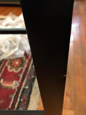 Although the leather is nice and I like the style, everyone of my four chairs had damage to the paint. The last one had chunks taken out due to it being dropped. I am returning that one and filling the scars in on the others. Disappointed in the quality, despite the ease of assembosnd quick delivery.