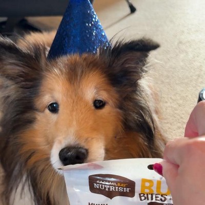 These burger bites are a big hit with my Sheltie Niles. He loves a burger in the morning after his breakfast. The flavor must be good based on how much he loves them and paws at the bag when given several treat options. They are healthier for his stomach sensitivities and offer healthy ingredients like bison and potatoes that I can feel good about giving to him daily. He also loves the chicken roasters made by Nutrish. Niles is 13 years old and enjoys soft treats like these for easy chewing. I love that they are made in the USA and contain no by-products, grain, corn or soy additives. Each treat is stamped to look like an authentic burger off the grill. Cute and tasty for my boy! His friend Zoey loves them too!