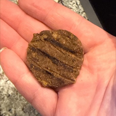 My dogs love these but the texture is really weird. They disintegrate into powder if you break them up at all (I use them to hide medicine). First time I’ve purchased these- I usually get the green chicken bag. Not sure if the bag I purchased is older or if they all do this. I’ve never had dog treats fall apart like these. Won’t be purchasing again.