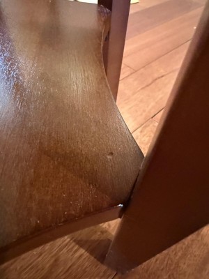 Beautiful piece of furniture...BUT...I'm not spending over $100.00 to get a brand new piece of furniture with a handprint in the stain on the wood. Returned it to the store for refund and have ordered another one online. Hopefully it won't have the same problem.