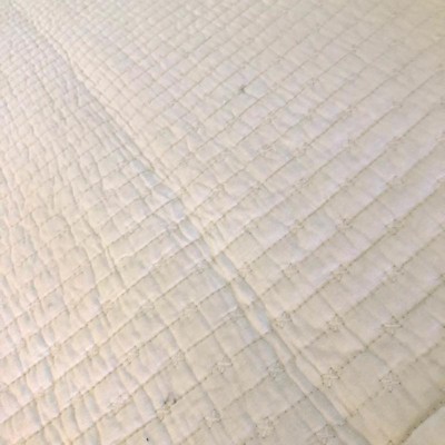 [This review was collected as part of a promotion.] This is a beautiful quilt and shams set. The color is a beautiful neutral cream that goes well with most other colors. And the cross-stitch design gives just enough texture to make it interesting without being over the top. This looks beautiful on its own but would also be great mixed in with different colors or textures of bedding for a really cozy look. I got a king size set to use on my queen bed (I always size up for comforters and quilts) and it is the perfect size with a bit of overhand on each side.