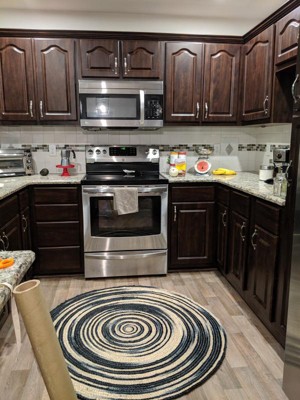 A very attractive and eye catching round rug. It is well made and the color variations are perfect.