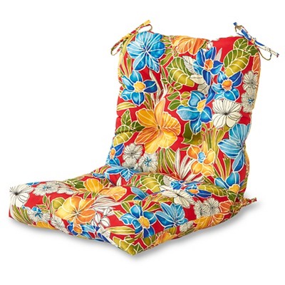 Kensington Garden 2pc 24"x22" Floral Outdoor Seat and Back Chair Cushion Set Aloha Red: UV & Water-Resistant, Tie-On