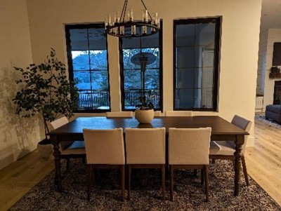 The chair's looked beautiful, but were not very comfortable at all. The cushion is so thin that you can feel the wood on your back as soon as you sit down. My husband and I returned them, because we had a feeling if they felt this way brand new they would not wear well.