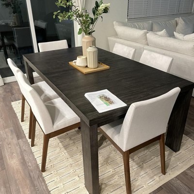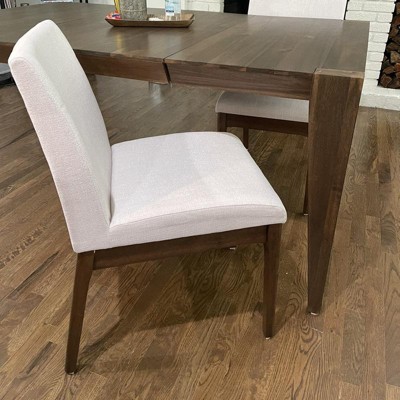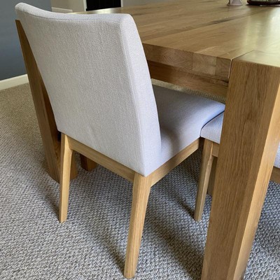 I have been looking at dining room chairs for literally years. My table is butcher block and the overall theme is mid-mod so these chairs in oak and cream were perfect. They are streamlined yet sturdy and comfortable. Best of all they were easy to put together.