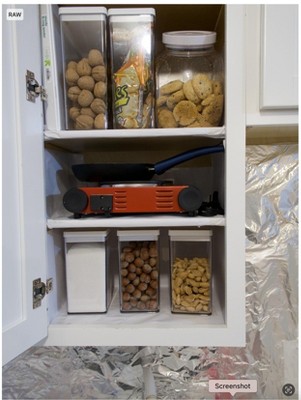 Purchased 5 of these for my feline. 4 for dry foods and 1 for dry treat mix. Labelled with a piece of paper on top and the circular opening away from me, I can easily lift the lids and grab a small handful for a new dry food feline mix each time. Press down and good remains fresh. Saves lifting the containers at 1am. My other felines now passed had containers with food premixed-my Cindy us a little pickier but her formal name given at the shelter was Cinderella.