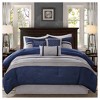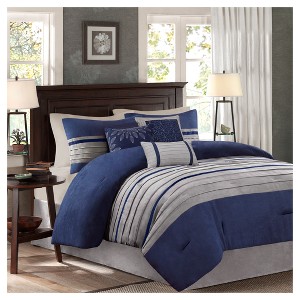 7pc California King Dakota Microsuede Comforter Set Blue: Madison Park, Hypoallergenic, Embroidered, Machine Washable