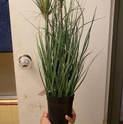 Vickerman Artificial Brushed Grass in Pot 24": Indoor PVC Faux Foliage, Black Plastic Container