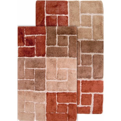 2pc Alloy Moroccan Tiles Bath Rug Set Khaki - Chesapeake: Cotton Tufted, Machine Washable, Spray Latex Backing