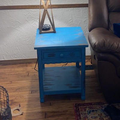 1-drawer End Table Hardwood White - Alaterre Furniture: Cottage Style, Square Legs, Storage Shelf