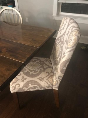 Homepop's Curved Top Parsons Dining Chair showcases a distinctive range of solid and printed fabrics on a classic parsons chair design. The curved top adds an elegant and modern touch to a dining room. This versatile chair design can also serve as additional seating in a living room, a resting spot in an entryway, or pair as a set of two vignette in a bedroom . Finished in a rich range of wood legs, the curved back parsons chair is easy to assemble and maintain with spot cleaning as needed. Sold as a set of 2. Please note that fabric and wood colors may appear slightly different due to variations in lighting or screen settings.