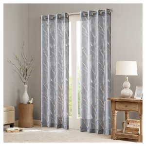 95"x50" Layla Sheer Bird Window Curtain Panel Gray: Madison Park, Botanical Pattern, Modern Decor, Grommet Top