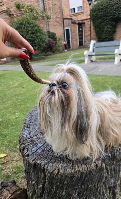 [This review was collected as part of a promotion.] My dog loves it, apparently he loves the taste, and the texture is perfect, soft, especially for him with small teeth. The ingredients are great, and the packaging is perfect for the type of product it is since it holds its shape. The price is not bad.
