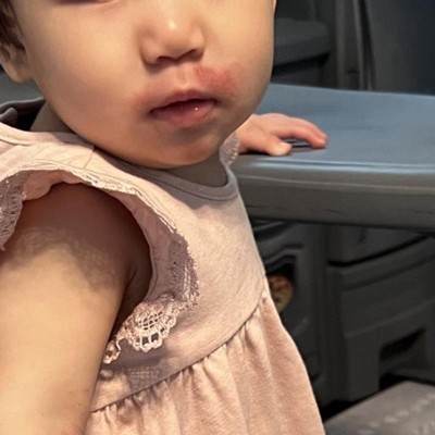 I loved these and how cute they are however, I’m realizing that my daughter is allergic to the material that touches her mouth. I started her with the MAM matte pacifiers at 4 months and she was fine. When she turned 6 months, I bought her these and I noticed she would start having a rash around her mouth. She was also teething and drooling so I assumed it was drool rash. She also suffers from eczema. After doc visits and getting prescribed steroid creams, nothing seemed to help clear her up. It was an endless cycle bc she needed her pacifier but we couldn’t get her off of it long enough to heal her rash. She is now 12 months old and today came home super inflamed and irritable. I decided to try a Benadryl cooling ointment and her rash cleared up immediately! I now realize she is allergic!! I cannot find any info on what these are made of vs. the matte ones she used prior. I’ve also sent an email to the manufacturer. I should probably try and wean her off them completely but I need to see if they make any for her age that aren’t this material.