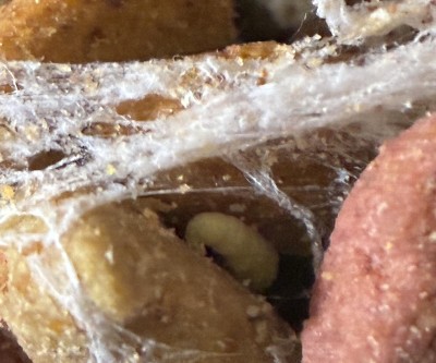 Opened the bag of dog Food and it Had worms and fine white stringy looking mess.