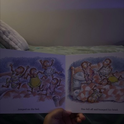 I’ve only been buying board books as my little one rips the pages out of regular books.. this one is so cute and fun to sing along to her. I grew up with the rhymes of this book and thought it gave such a valuable lesson of why we shouldn’t jump on a bed. She’s at that stage where she’s jumping off of things so I’m hoping this will help her change that lol. She’ll look at the faces of the monkeys that fell off the bed and says “owie”. Which is a great sign for me to know she understands they got hurt. Definitely love it!