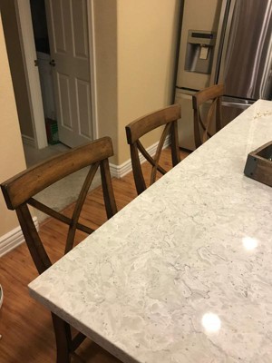 Solid wood, quality chairs for a very affordable price. Pecan finish so pretty! Also purchased the pedestal table to match. The table comes with a pedestal extension to increase height from normal table height to counter height. The first table ordered was damaged. Target sent a replacement in a few days. Return of table, pickup was very easy. Target had best price, than several other popular online furniture sites, for both counter height chairs & table. So pleased with this online purchase.