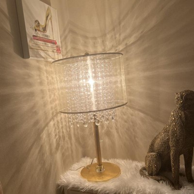 30" Antique Metal Table Lamp with Crystals, Bronze Finish & Ivory Shade - Ore International