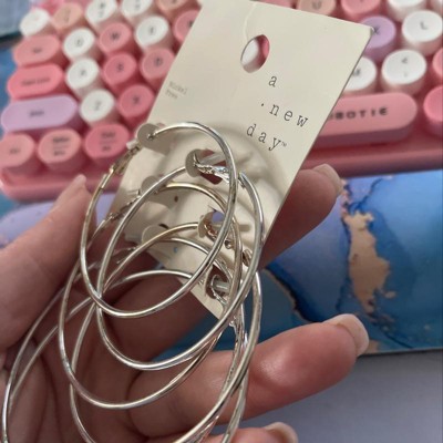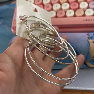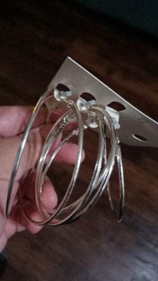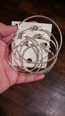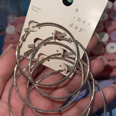Thin Clickback Hoop Earring Set 3ct - A New Day™ Silver: Leverback Closure, Brass Nickel-Free Metal, 16+ Age, 2" Diameter