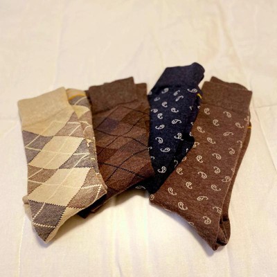 Overall, my husband really likes these socks. He says they are light but supportive and not restrictive or tight. The packaging says they fit shoe sizes 6-12.5; my husband is right in the middle at size 9 and he says they fit perfectly. So far they've retained their shape and integrity after washing. Quality looks and feels good. As far as design, we like the argyle print but the paisley is small and almost looks like something else... Also would have been nice to have and gray shade and a black, possibly in lieu of the light blue and additional dark brown. But overall, we like them.