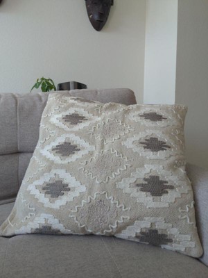 20"x20" Geometric Diamond Textured Throw Pillow Natural/Gray - Rizzy Home