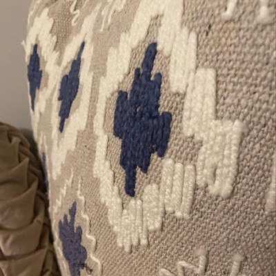 [This review was collected as part of a promotion.] First off I really like the design of this decorative pillow! Really goes will almost anything. The pillow is large and full, its texture is kind of woven so if you are looking for a soft pillow this is not it. However this pillow is still comfortable to lay on. I really appreciate that it is made out of recycled materials!!