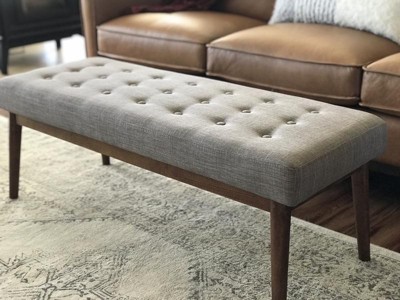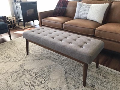 West Park Bench Gray - OSP Home Furnishings: Chic Tufted, Mid-Century Ottoman, Wood Frame