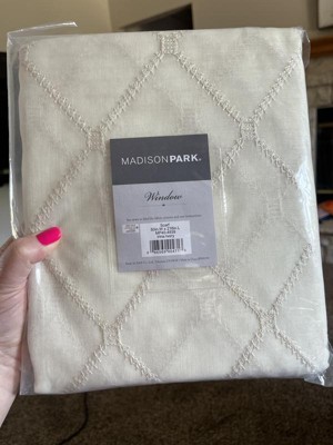 144"x50" Clarissa Diamond Sheer Embroidered Window Scarf White: Madison Park Geometric Sheer Valance, Machine Washable
