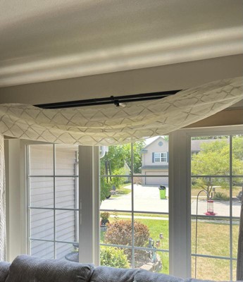 [This review was collected as part of a promotion.] This window scarf is pretty awesome. The material is high quality and the design and colors are so pretty. I love that you can use it in different ways to change up the look of the room anytime you want. You can style it any way you want. It definitely adds elegance to the room and it's easy to hang