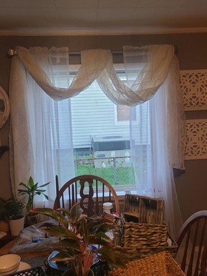 [This review was collected as part of a promotion.] I am truly impressed with the quality, texture and durability of this beautiful window scarf. I love how the intricate embroidery adds a touch of elegance and sophistication to my room. The sheer fabric allows just the right amount of light to filter through, creating a beautiful ambiance. The diamond pattern design is beautiful and versatile complementing my room perfectly. The quality of this window scarf is absolutely remarkable. The fabric feels very durable, ensuring long-lasting use. The stitching is impeccable, with no loose threads or fraying edges. It's evident that great attention to detail has been given to every aspect of its construction. Installing this scarf was a breeze. The generous length provides ample coverage, allowing for different draping styles. Whether it's cascading gracefully or gently swagged, the scarf effortlessly adds a touch of sophistication to my window. The included hanging instructions were clear and easy to follow. I love how this scarf easily coordinated with existing decor. Its neutral color palette blends seamlessly with a variety of color schemes, making it a versatile choice for any room. It also complements different curtain styles, providing an added layer of elegance. I love the fact that this scarf Is machine washable, which makes cleaning a breeze. The fabric retains its shape and color even after multiple washes, ensuring its longevity. I would definitely recommend this to anyone who is looking to add a beautiful, well-crafted, versatile and easy to clean window scarf as you will not be disappointed in this one.