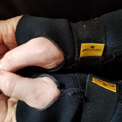 Second one I've purchased. First one lasted a couple years. Aside from the horrible velcro at the end the straps my first one functioned as it should. Just received my second one and after one day of use the stitching is already coming apart at the thumb. On further inspection it was clear the seams will and already have begun to pull apart. Obviously there's no quality control taking place at Futuro. Very disappointed. This is good design but poor stitching will be its' demise. Along with the lack of proper velcro to attach the strap tabs, the stitching is the last straw for me. I won't be buying another as I don't feel confident the new one will last as long as my first.