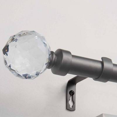 Exclusive Home 36"-72" Crystal Ball Curtain Rod - Matte Black: Adjustable Iron Rod, Single Novelty Finial, 25lb Capacity