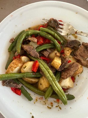 The best flavor of this brand of dinners. Hit or miss meat quality, I’ve had to spit a bite out every 3 meals or so. Great flavors though, quality green beans. Easy cook, great to take to work.