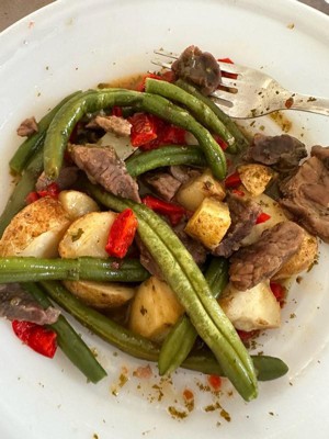 I love the steamers, I was hesitant about the beef ones for texture reasons but this one is extremely good. The beef is tender, not stringy or tough. the green beans, peppers, and potatoes all cooked perfectly. I was surprised by the freshness and crispness of the green beans. The flavor profile of this one is very very tasty, it has a little bit of spice and doesn't taste bland in the slightest. It might be my new favorite.